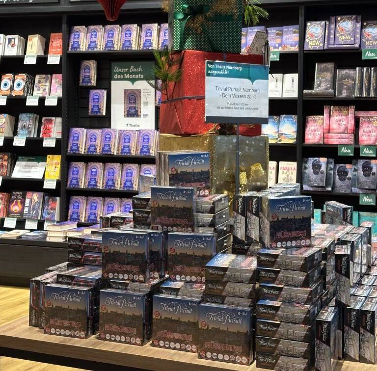 Wer auf der Suche nach der Trivial Pursuit Nürnberg Edition ist, hat nun wieder zwei zentrale Anlaufstellen: Die Spiele sind frisch eingetroffen und ab sofort sowohl in der Filiale in der Karolinenstraße als auch im Mercado Nürnberg erhältlich. Wir wünschen viel Freude beim Entdecken und Spielen!